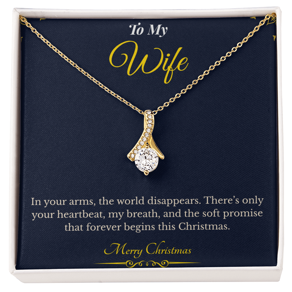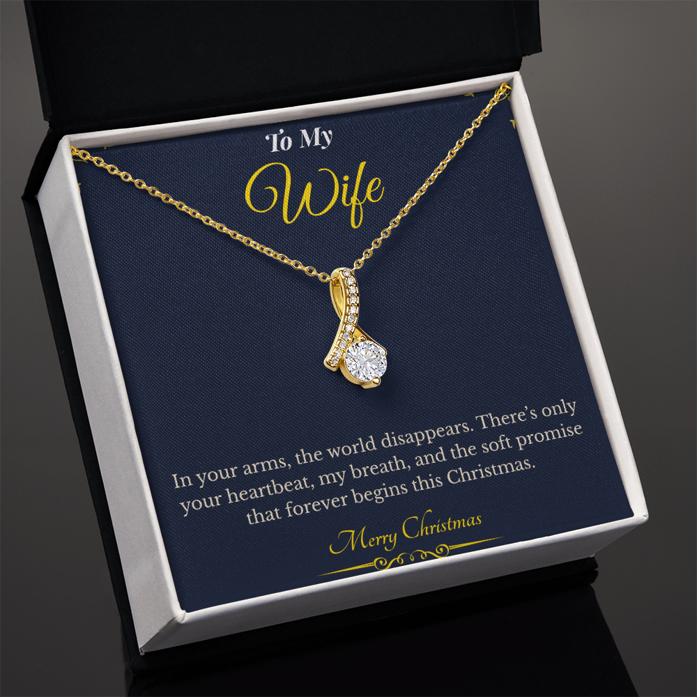Wrap your love in elegance this holiday season with the Alluring Beauty Necklace, a romantic and timeless piece of jewelry designed to celebrate her grace, beauty, and strength. Engraved with the heartfelt message, “In your arms, the world disappears. There’s only your heartbeat, my breath, and the soft promise that forever begins this Christmas,” this necklace is the perfect way to say I love you without words.