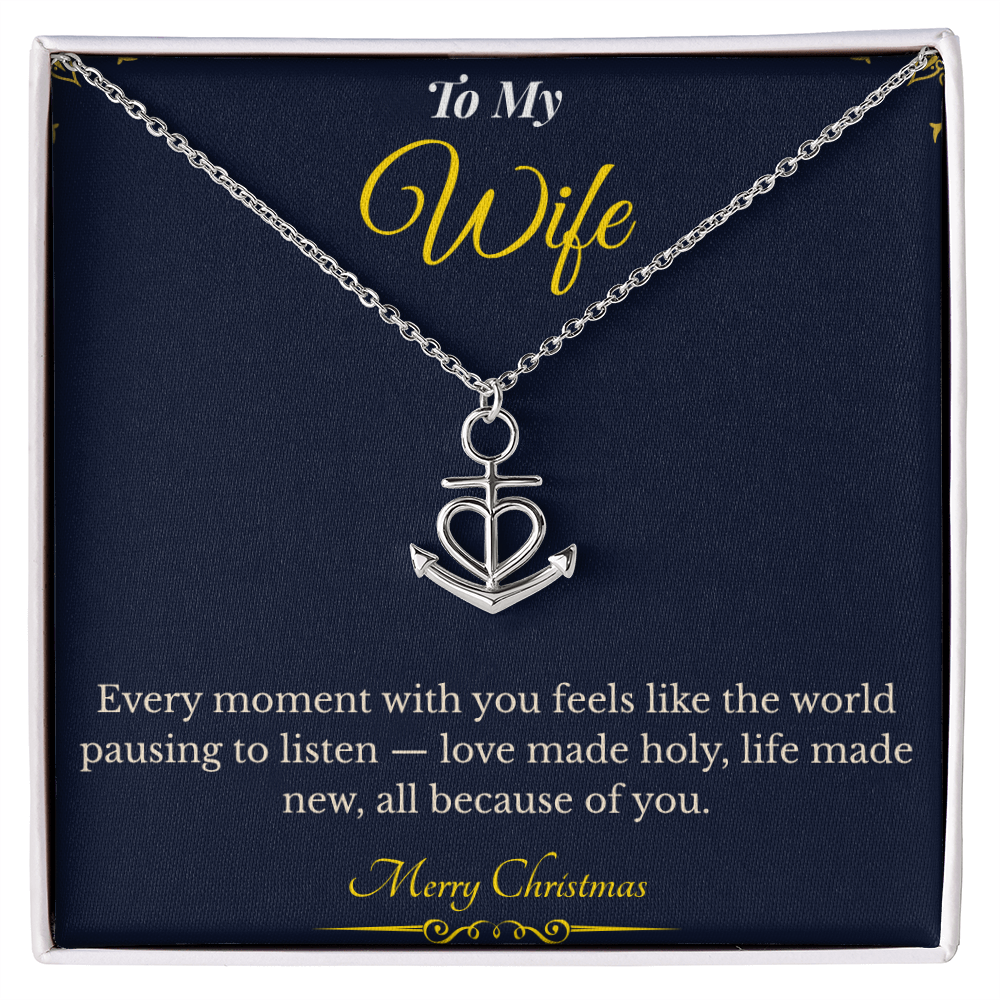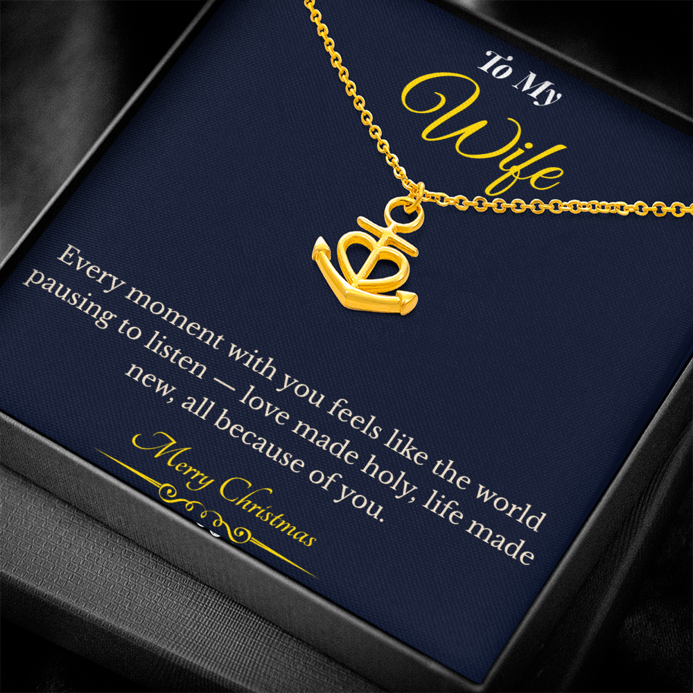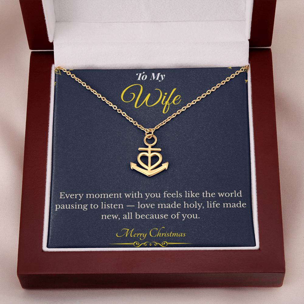 Celebrate unbreakable love and devotion this holiday season with the Anchor Pendant Necklace, a beautiful symbol of strength, stability, and eternal connection. Featuring the heartfelt message, “Every moment with you feels like the world pausing to listen — love made holy, life made new, all because of you,” this elegant necklace perfectly captures what it means to be anchored in love.