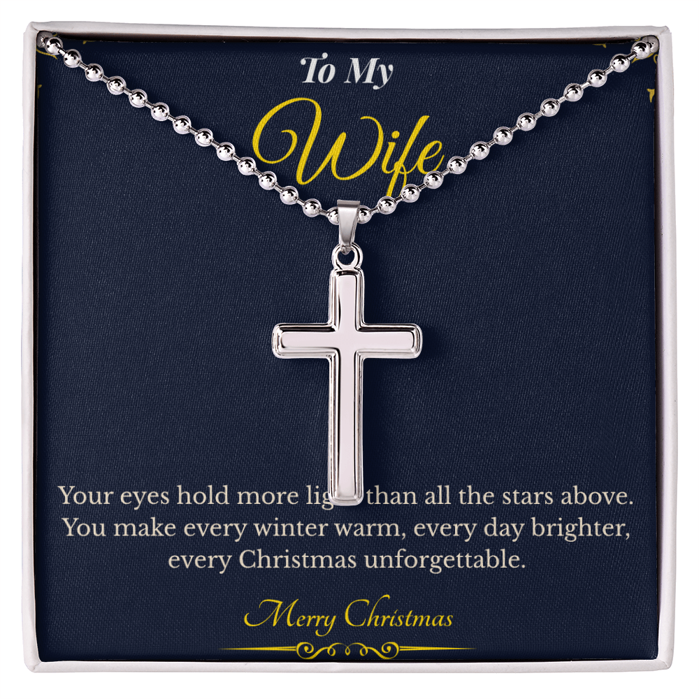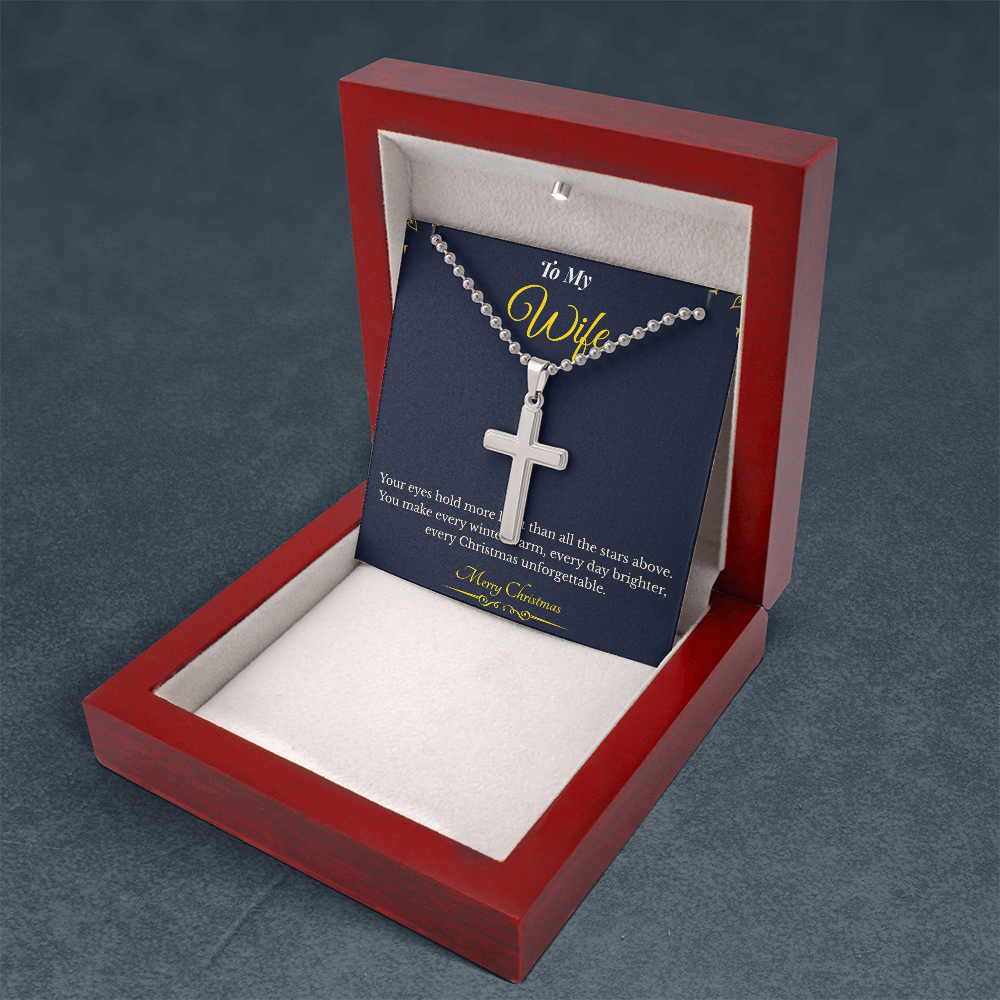 Honor the beauty of her faith and the strength of her spirit with the Artisan Cross Necklace with Ball Chain — a heartfelt and elegant Christmas gift for your wife.