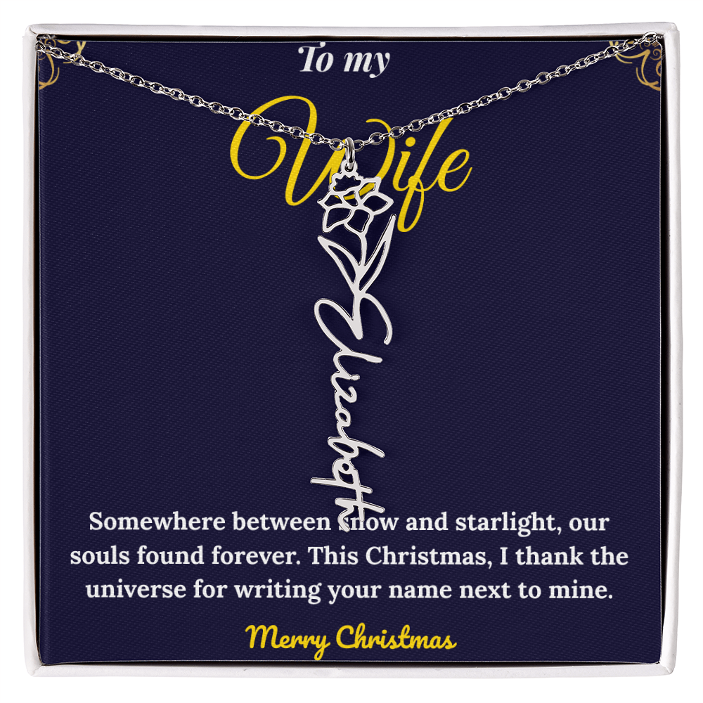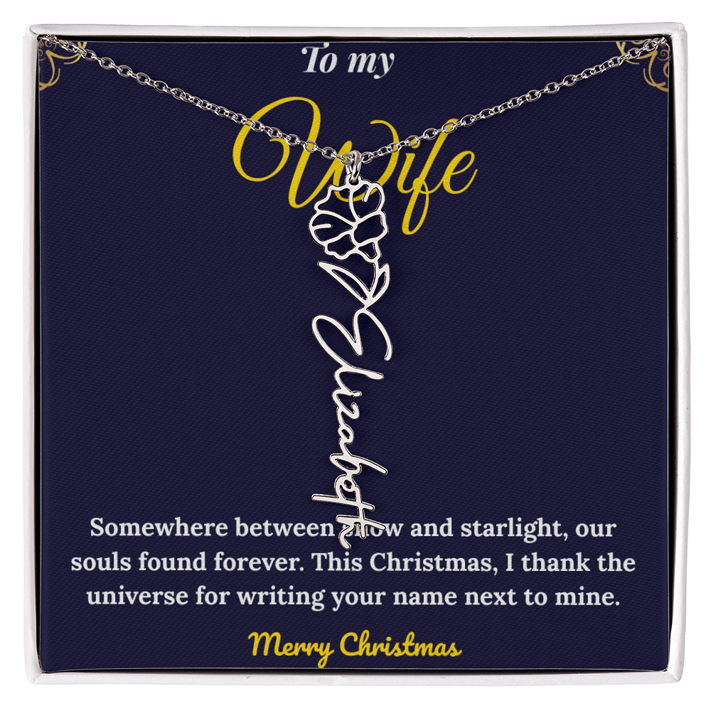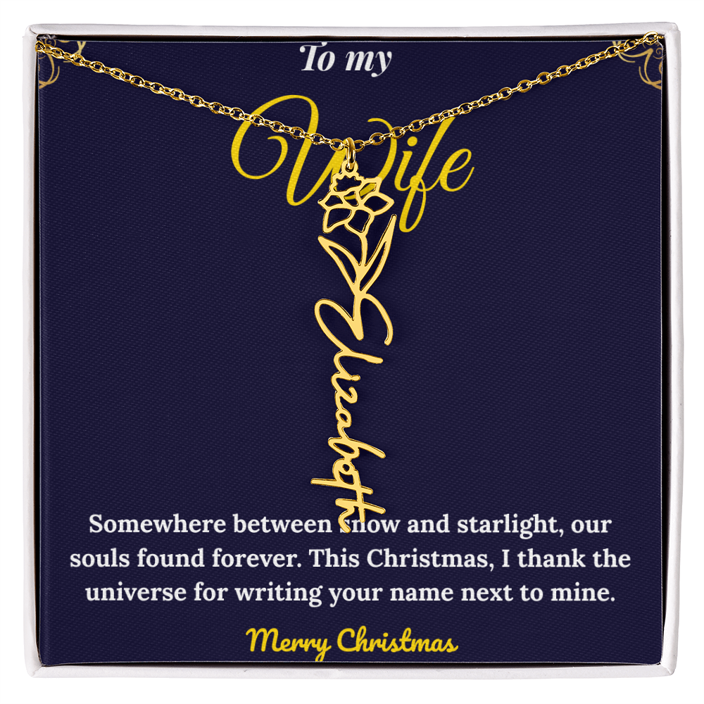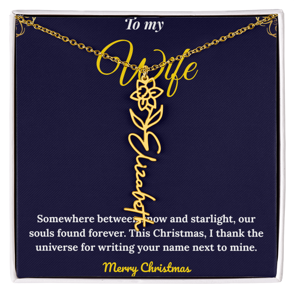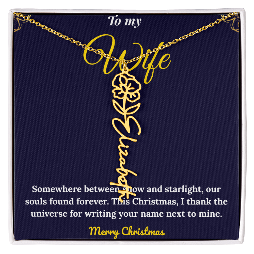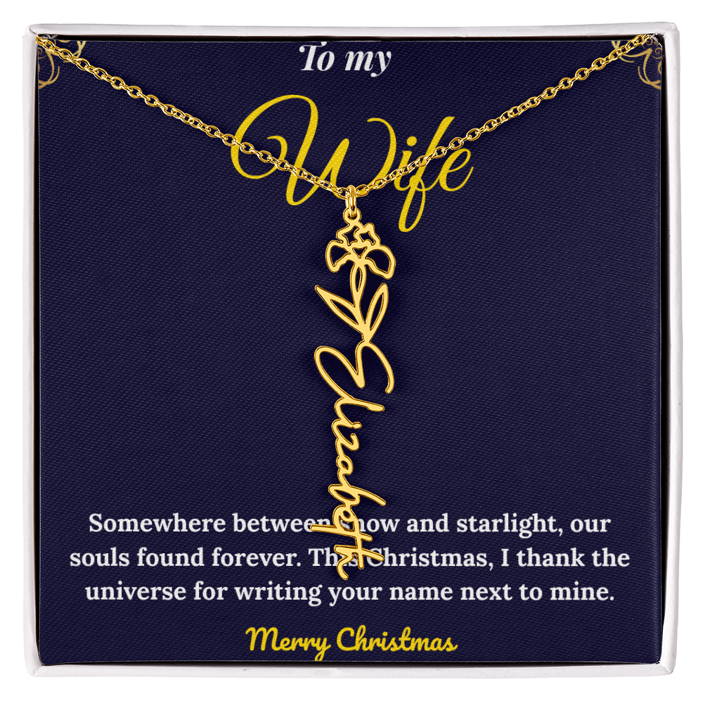 Celebrate love and individuality with our Custom Vertical Name Necklace — a perfect Christmas gift for her. Expertly handcrafted in polished stainless steel or 18K yellow gold, this personalized drop pendant features your chosen name and a delicate birth flower design for a truly meaningful touch. The adjustable 18”-20” chain ensures a perfect fit for any occasion, from festive celebrations to everyday wear. Made in the USA with premium materials, this floral name necklace beautifully blends elegance and sentiment. Create a one-of-a-kind keepsake that reflects her unique charm and makes this holiday season unforgettable.