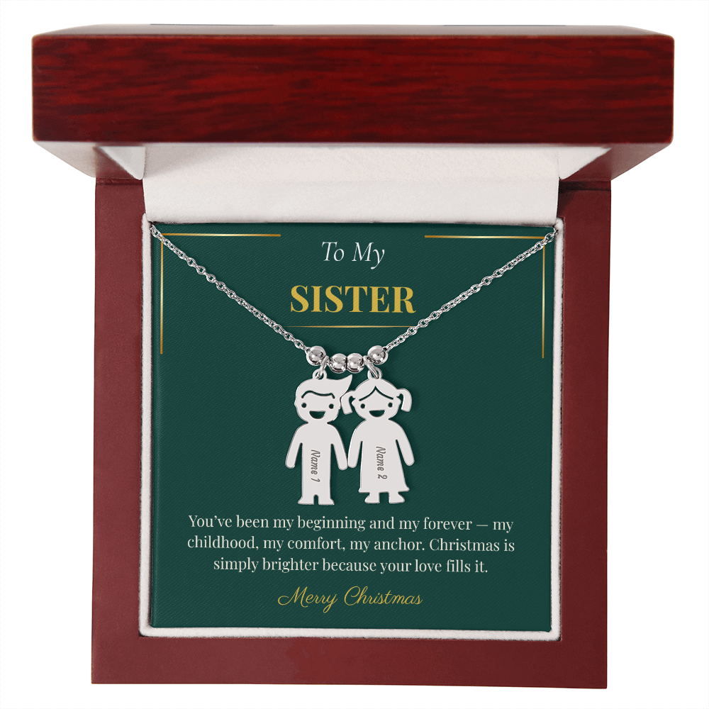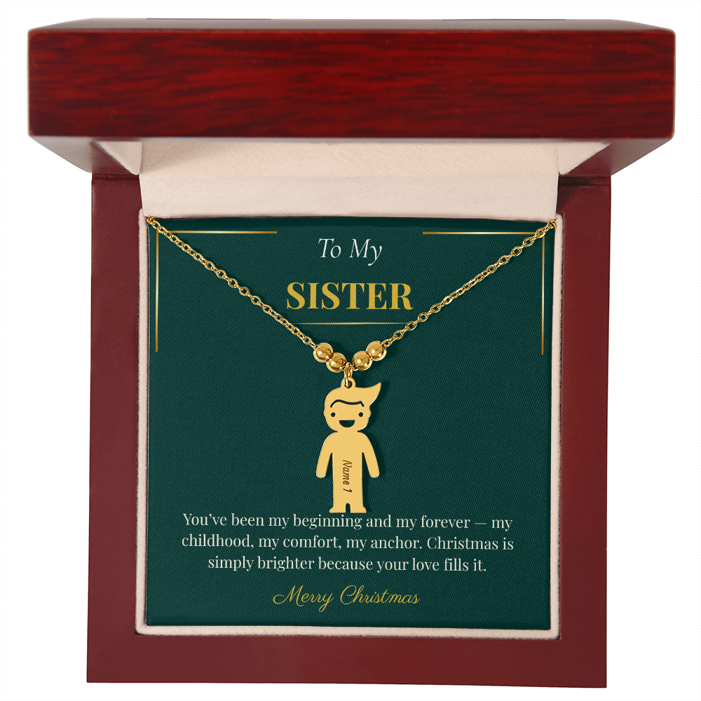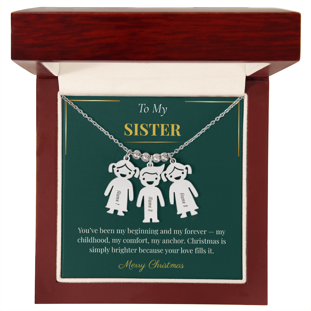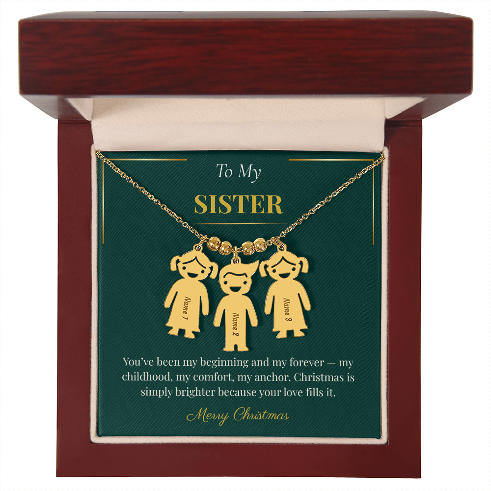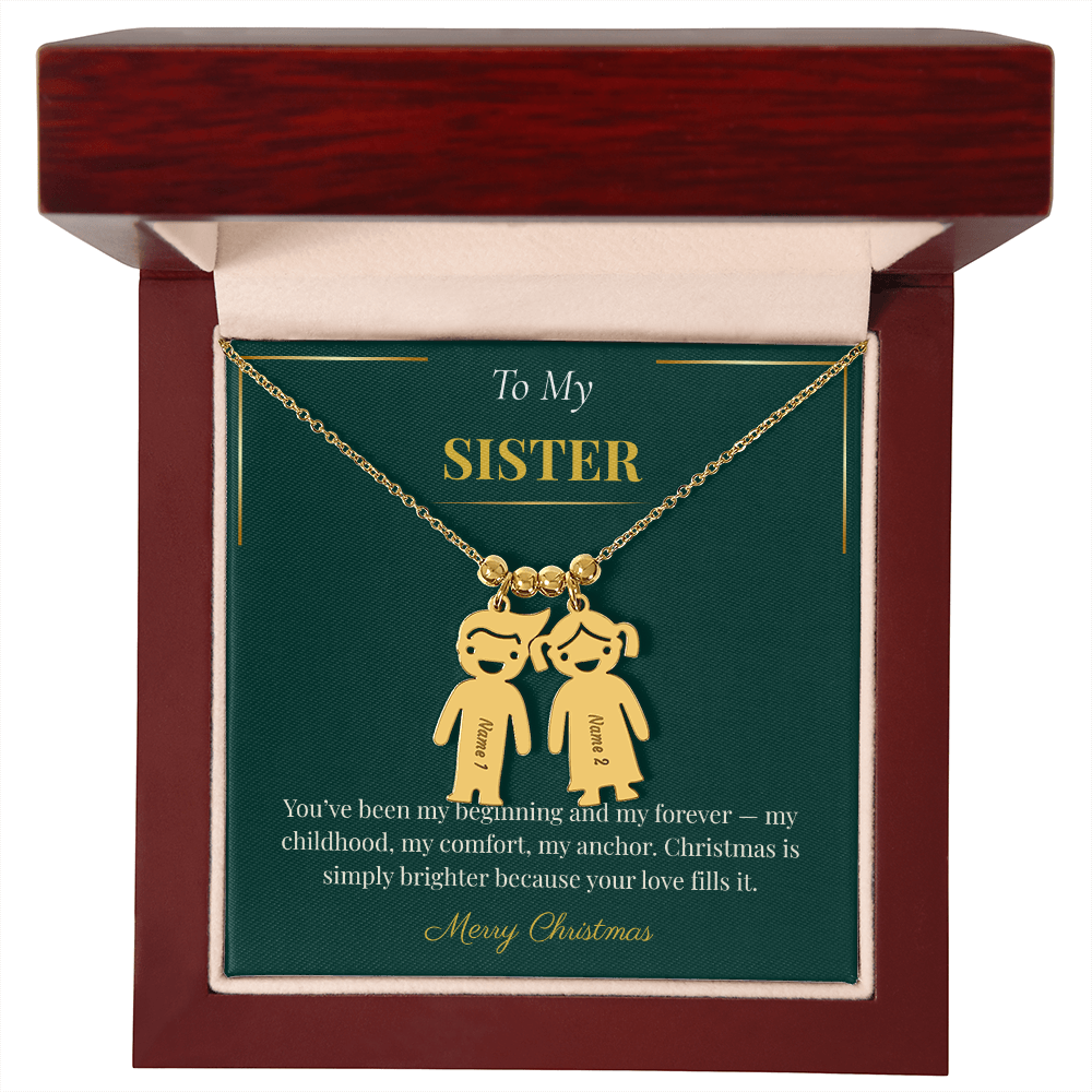 Engraved Kid Charm Necklace – Sentimental Christmas Gift for Sister | Custom Family Jewelry Gift