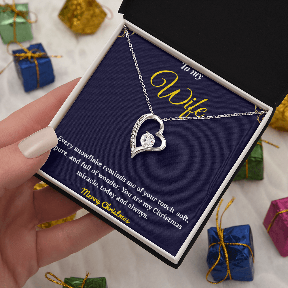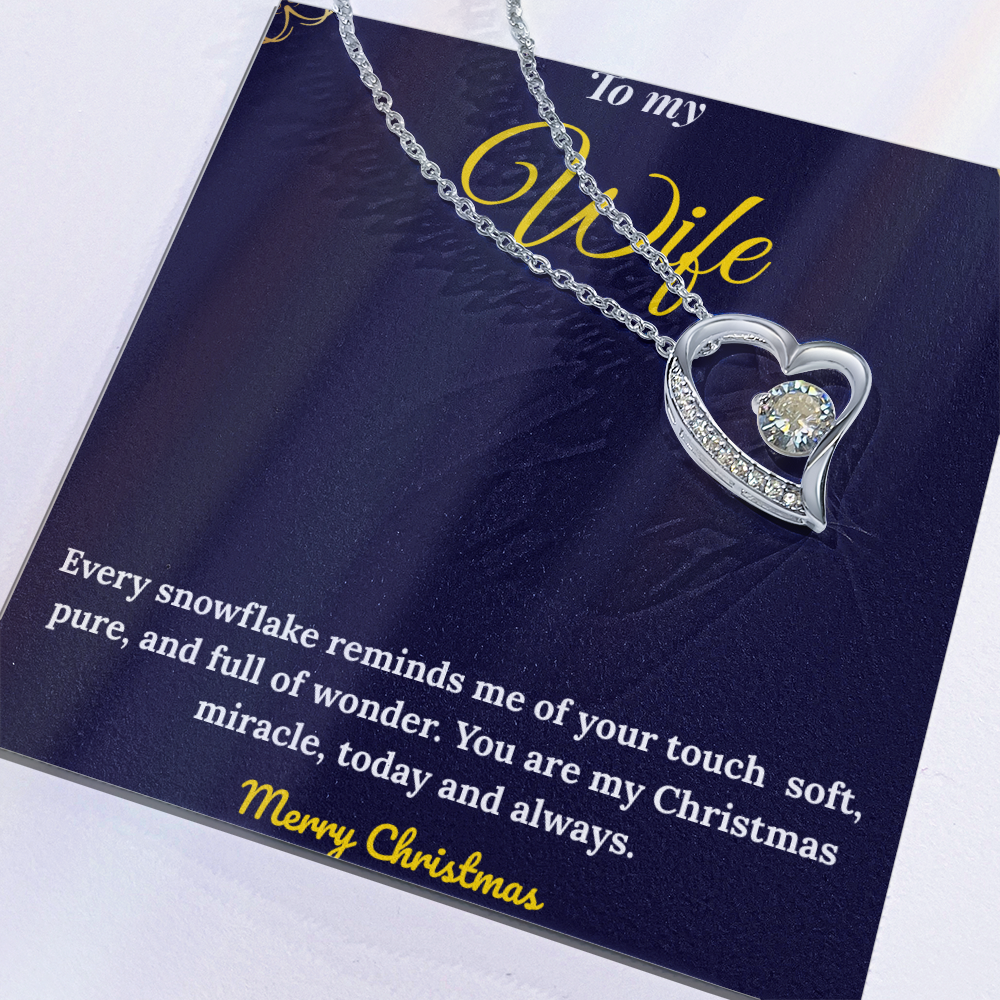 Forever Love Necklace – Sparkling White Gold Heart Pendant | Elegant Christmas Gift for Wife