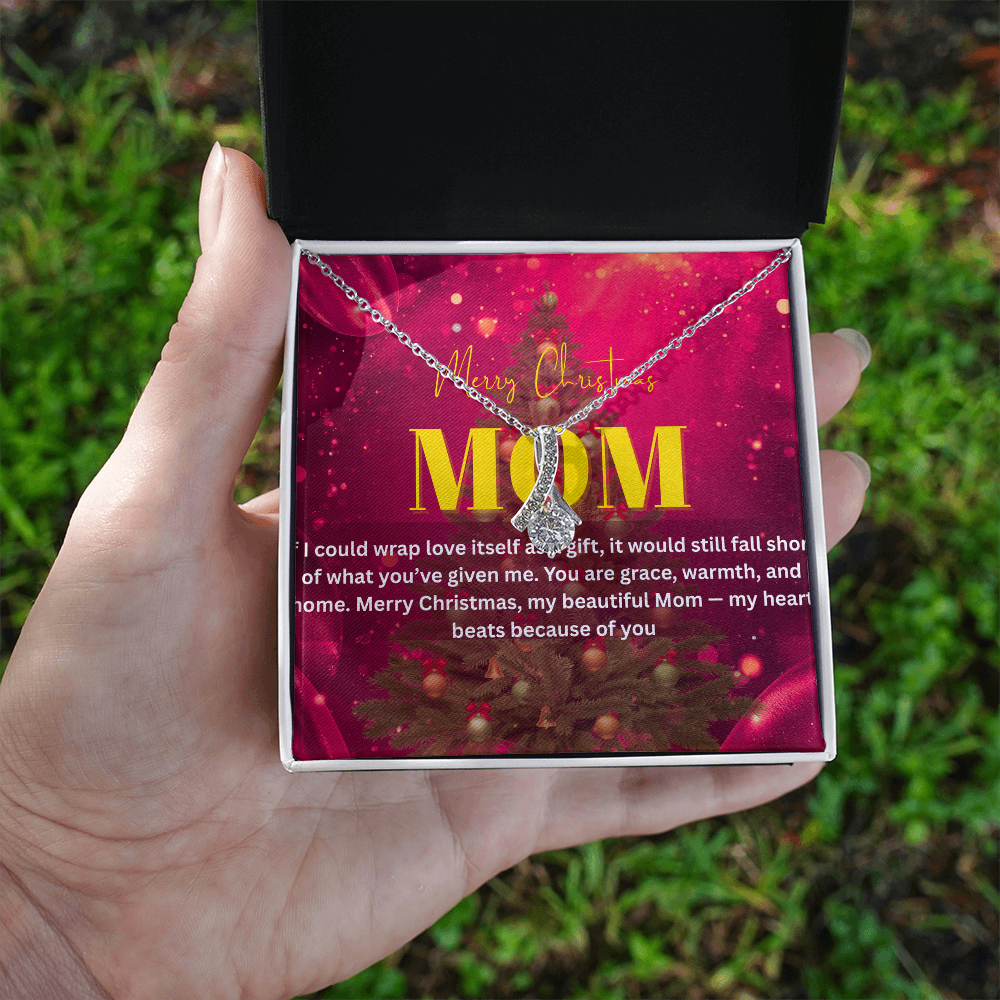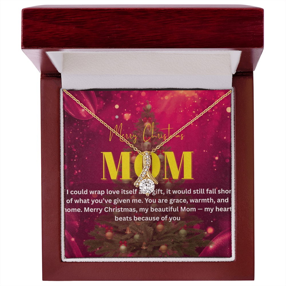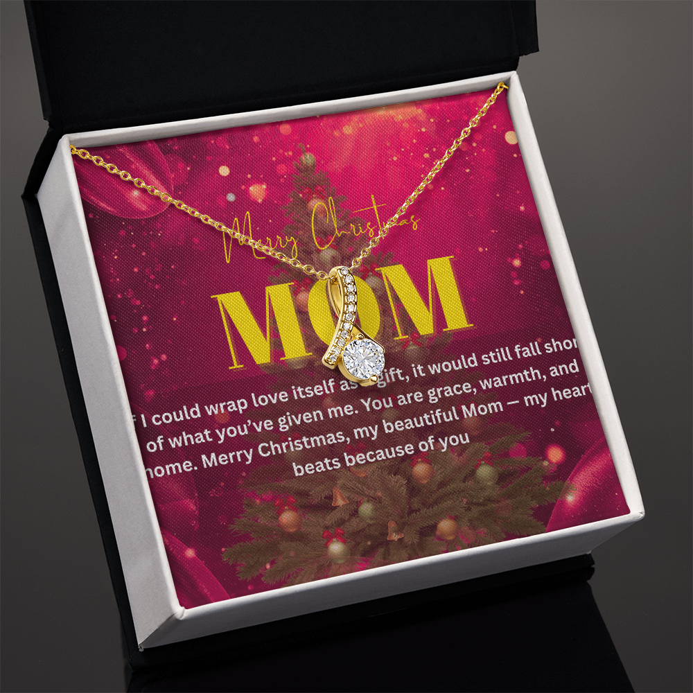 "Heartfelt Christmas Gift for Mom – Alluring Beauty Necklace with Message Card | 14k White or 18k Gold Finish"