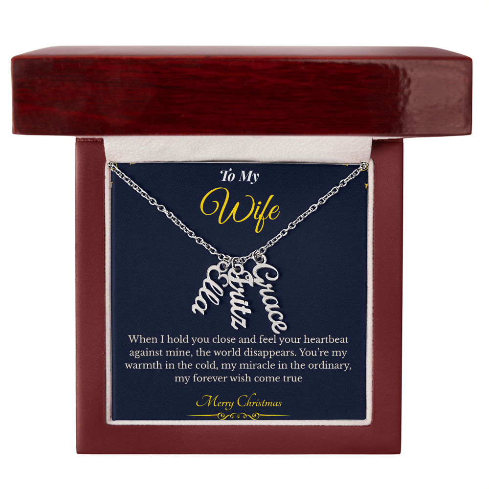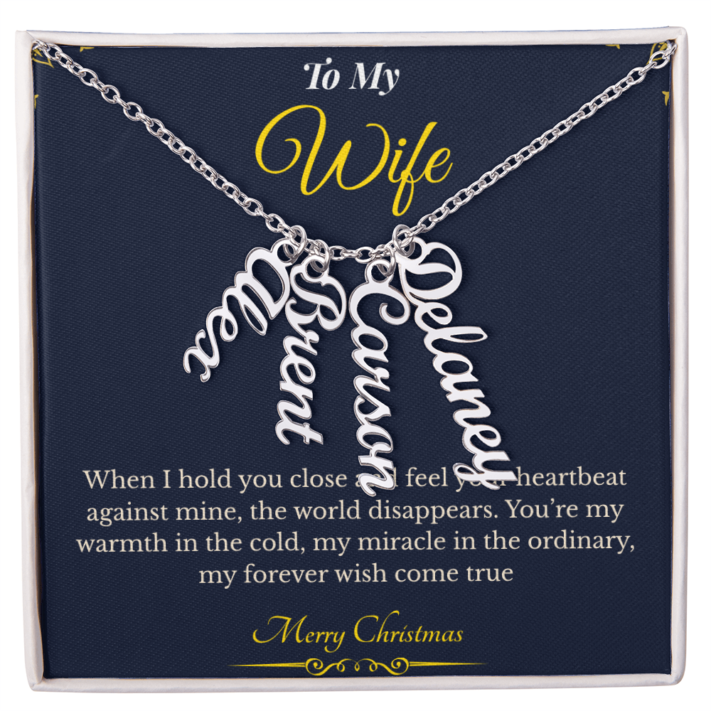 Multi Vertical Name Necklace – Custom Christmas Gift for Wife | Personalized Jewelry That Keeps Loved Ones Close | Elegant Multi-Name Design She'll Treasure