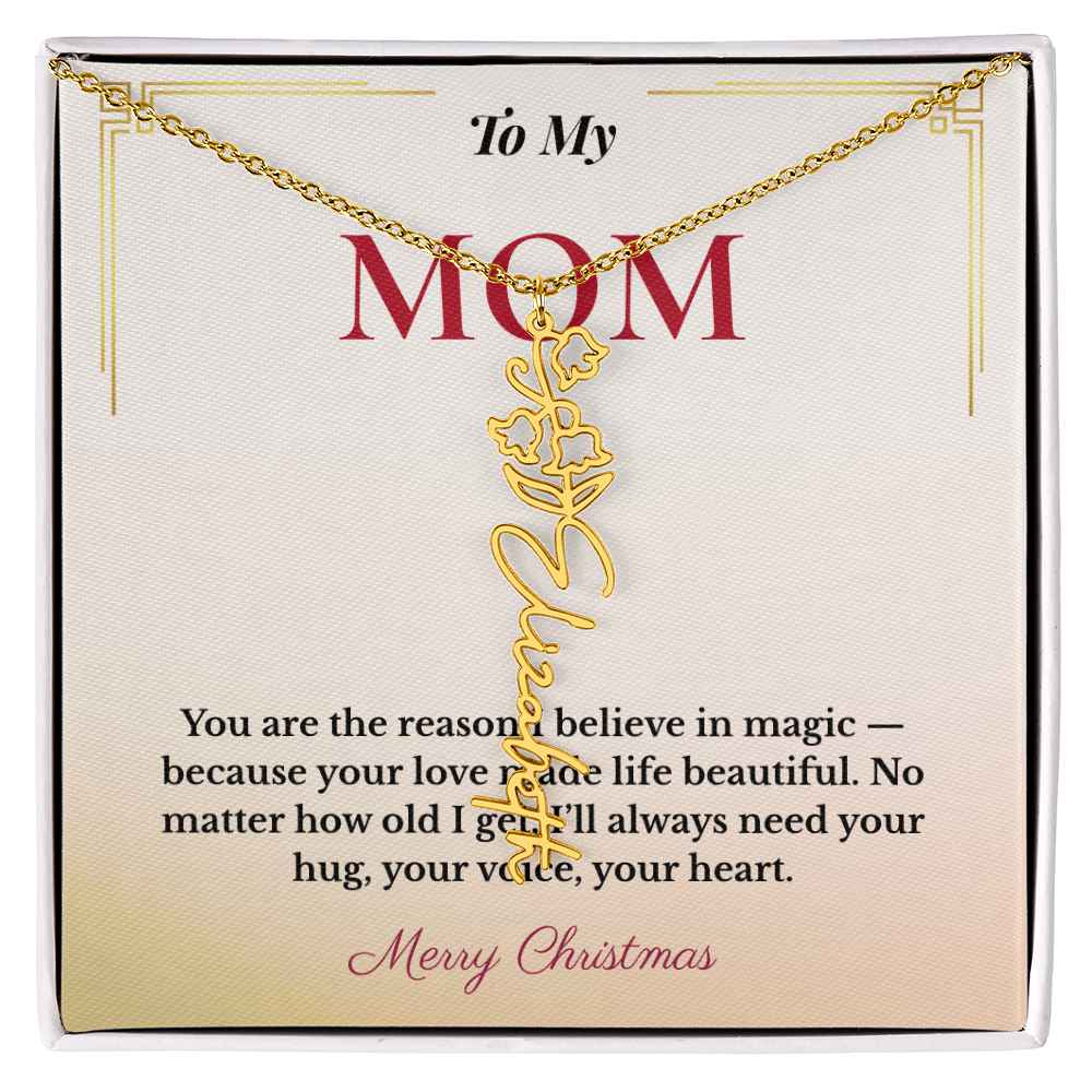 Let her heart bloom this Christmas with the Flower Name Necklace, a breathtaking blend of personalization and elegance. Crafted to celebrate her beauty, warmth, and endless love, this necklace is more than a piece of jewelry — it’s a tribute to the woman who makes life blossom.